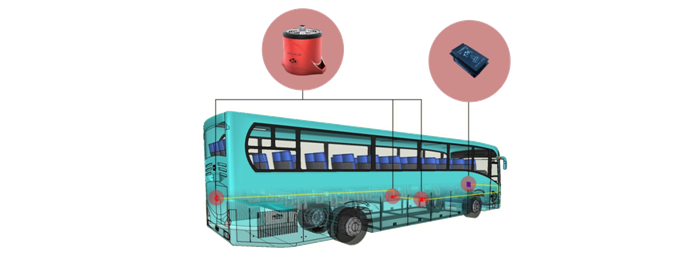 計案例:江西百路佳新能源6.5米長客車,內(nèi)有電池艙5個,故需設(shè)計的保護(hù)區(qū)為5個保護(hù)區(qū),每個保護(hù)區(qū)配置1臺自動滅火裝置(型號QRR0.03GW/SHS-AR23ZF),5個保護(hù)區(qū)內(nèi)的5臺裝置通過總承線束和駕駛員操作盤上的模塊聯(lián)接。
