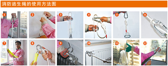 第三步:檢查并確認(rèn)各個(gè)環(huán)節(jié)安全無誤后,將逃生繩扔至窗戶外,然后沿著墻面下降。