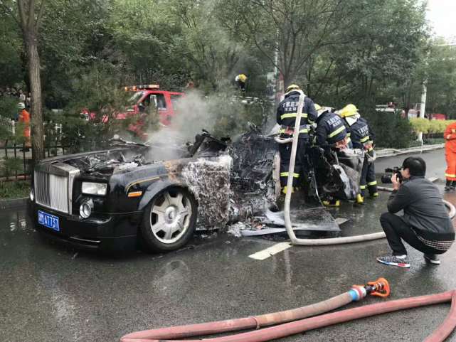 中隊出動4輛消防車,19名消防官兵趕赴現(xiàn)場,10時13分到達現(xiàn)場,一輛車牌號為津MAT737的勞斯萊斯幻影轎車發(fā)生火災(zāi),著火部位為車廂,著火面積約4平方米,10時18分明火已被撲滅,于10時30分返回。