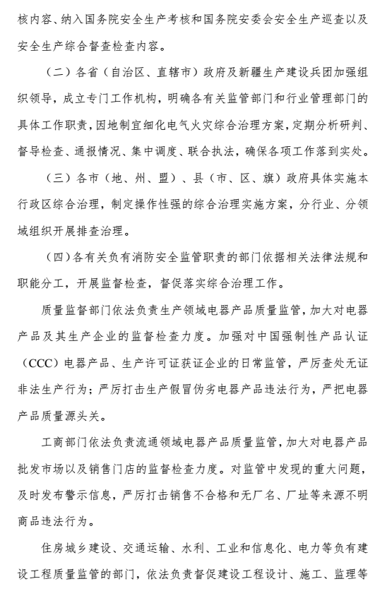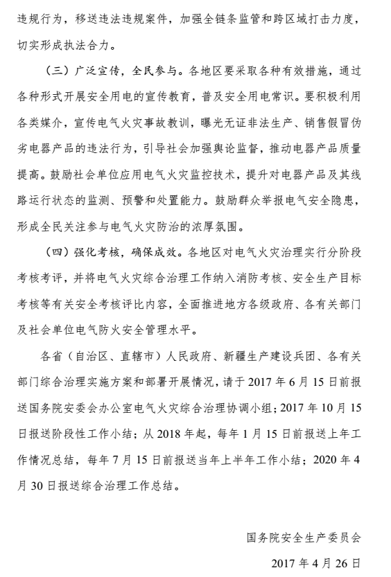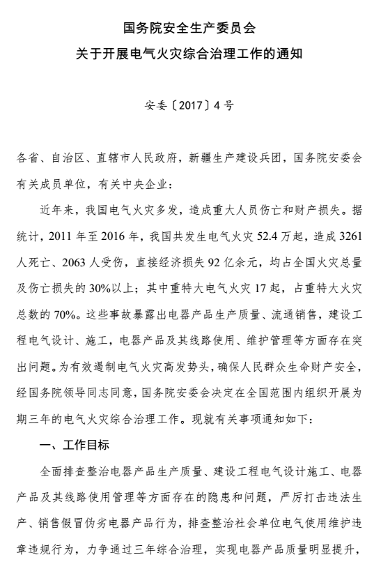國務(wù)院安全生產(chǎn)委員會 關(guān)于開展電氣火災(zāi)綜合治理工作的通知
