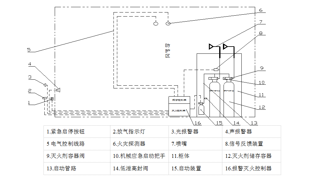 ● 該裝置的啟動方式為自動控制、手動控制和機械應(yīng)急手動控制三種。一般情況下應(yīng)使用手動控制,在防護區(qū)無人的情況下可以轉(zhuǎn)換為自動控制,當自動控制和手動控制不能執(zhí)行時,應(yīng)采用機械應(yīng)急手動控制。